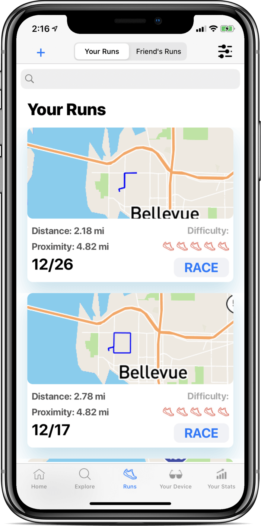 The Ghost Pacer app connects with Strava, allowing you access to your own Strava runs and thousands more from across the country.